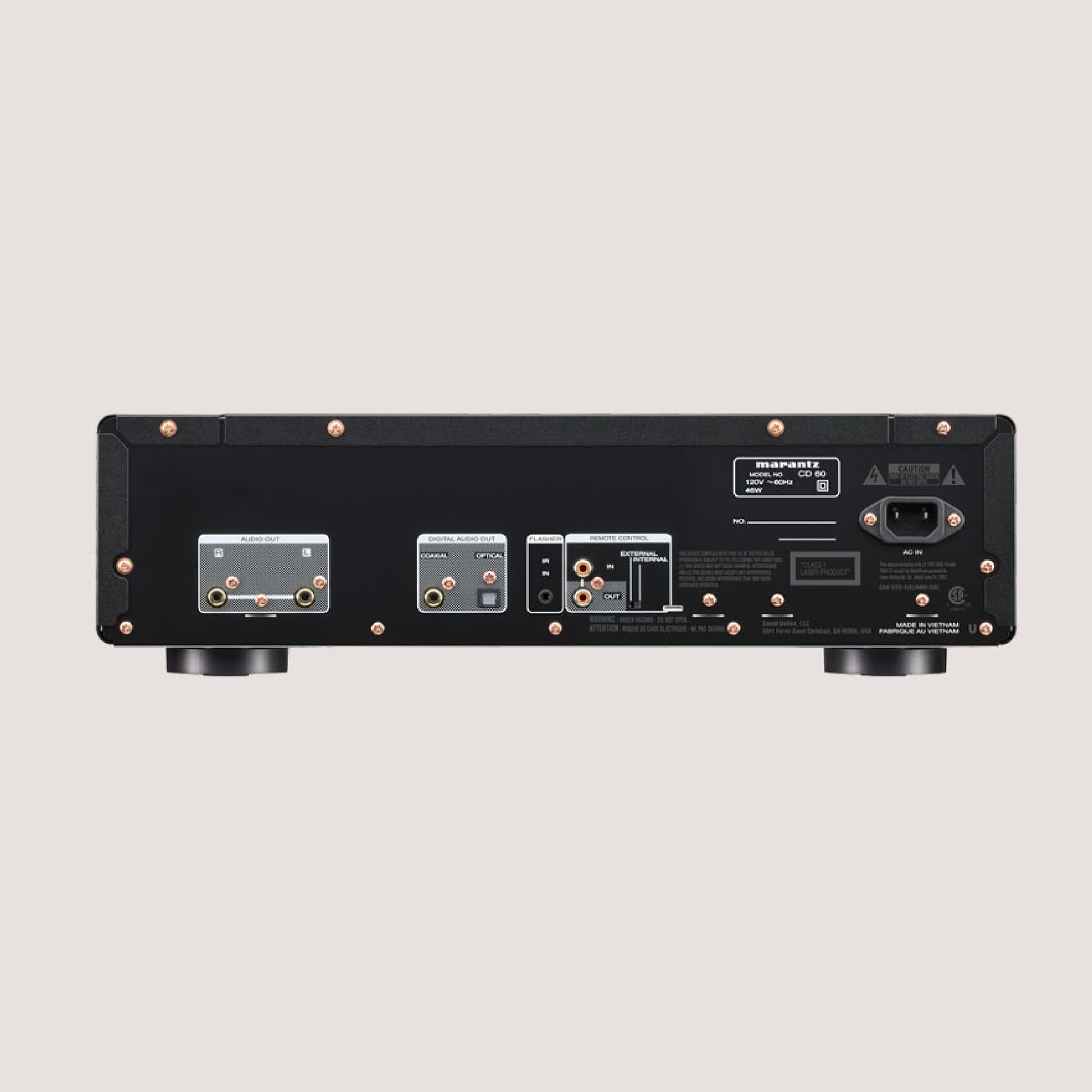 The CD 60 power supply uses highspeed, high-current Schottky barrier diodes, higher value current storage capacitors and improved voltage regulators compared to predecessor models in this class. Oversize capacitors in the power supply improve current stability and reduced noise during highly demanding listening sessions.