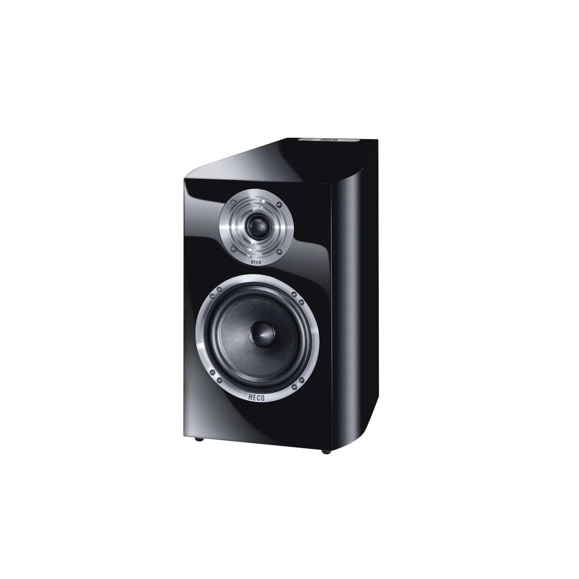Compact high-end shelf speaker with an audiophile configuration and a distinctive visual appearance. The most striking design elements include the angled top with the embedded metal HECO logo, as well as the rounded side panels and rear tapered housing. All of the frequencies above approx. 2,800 Hz are catered for by the newly developed Fluktus tweeter with its 30 mm PFC dome. The computer-optimized multi-wave front panel ensures a harmonious dispersion over the tweeter´s entire frequency range. The 170 mm bass-midrange driver utilizes the particularly lightweight and reliable HECO kraft paper cone, which is characterized by its outstanding audiophile sound characteristics and high level stability.