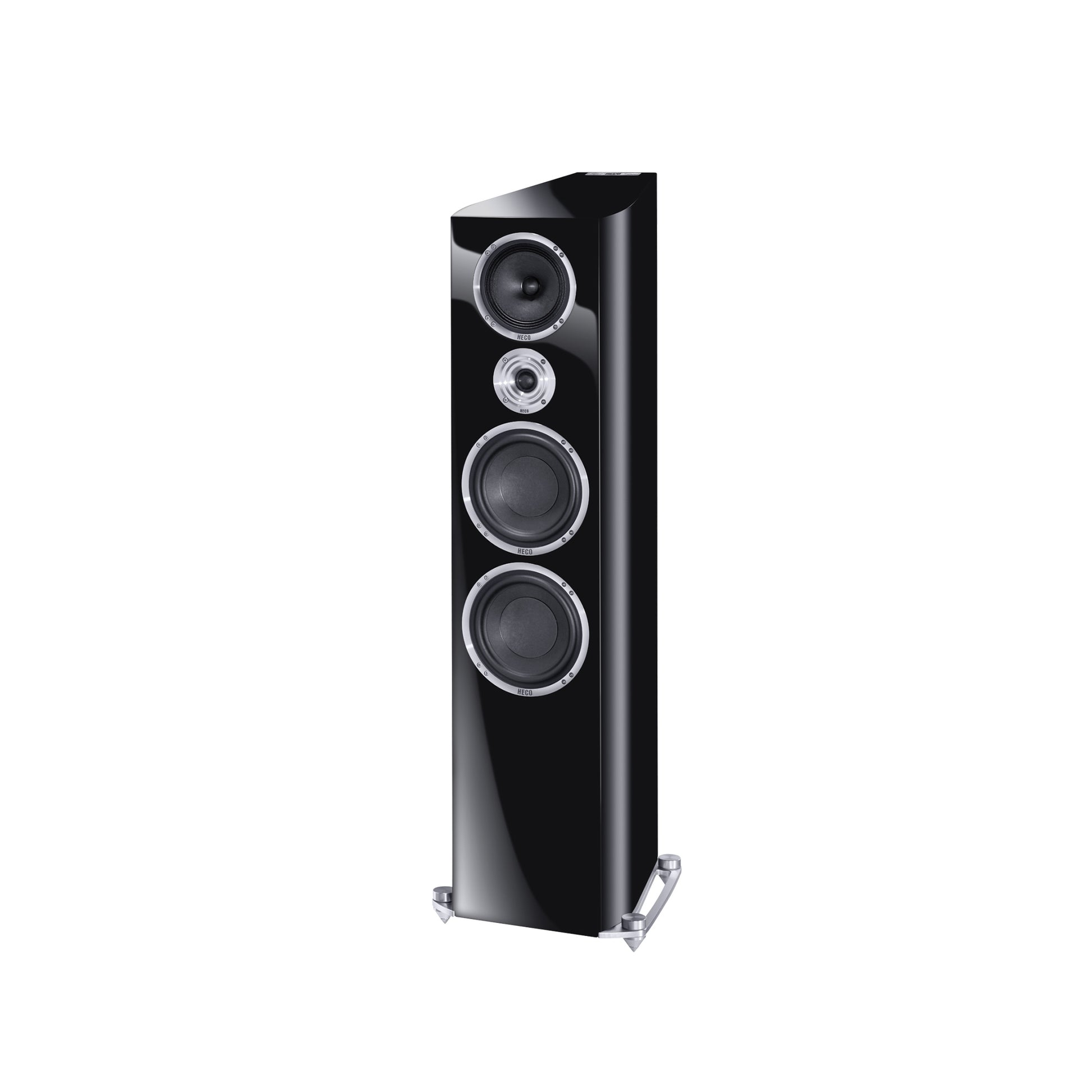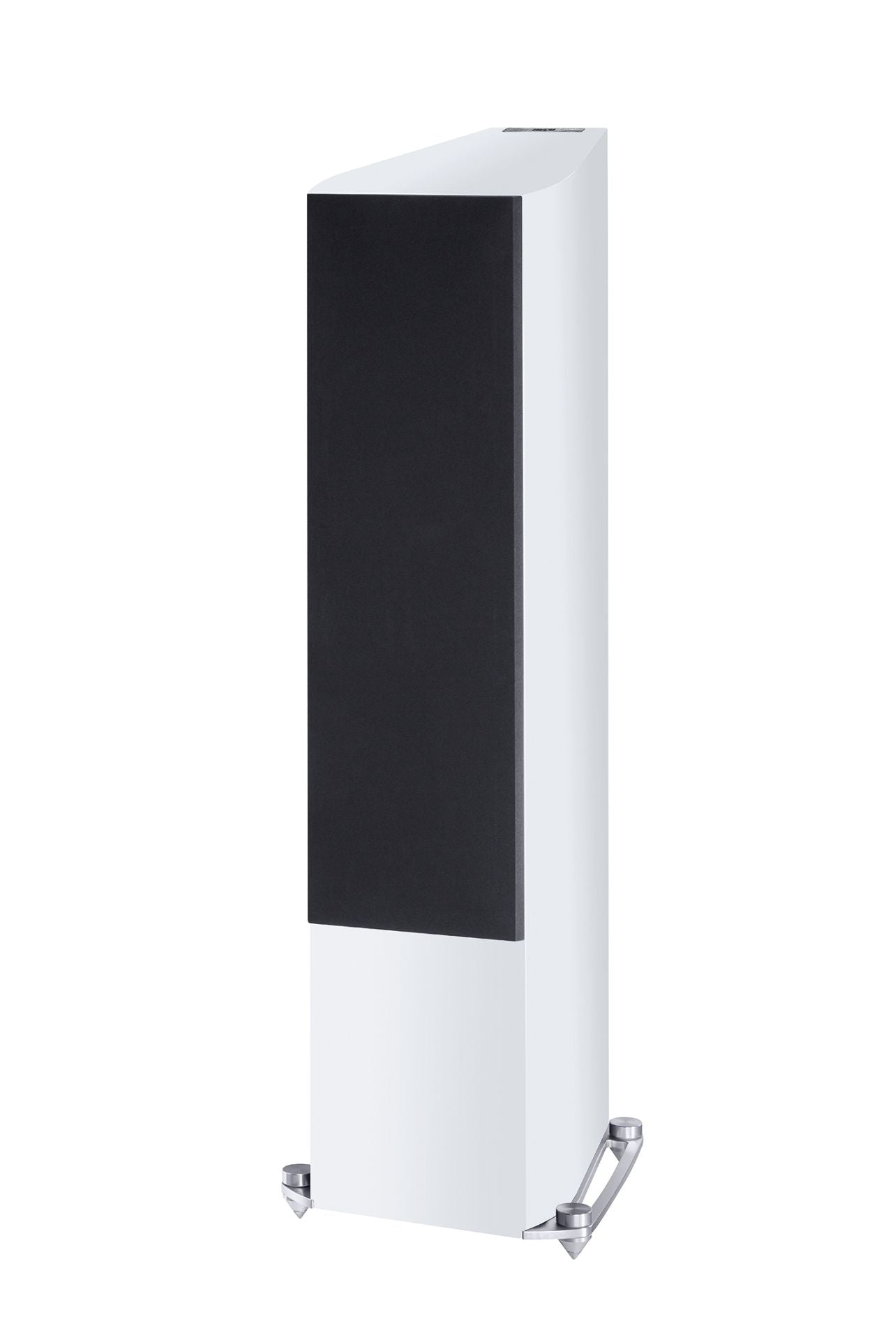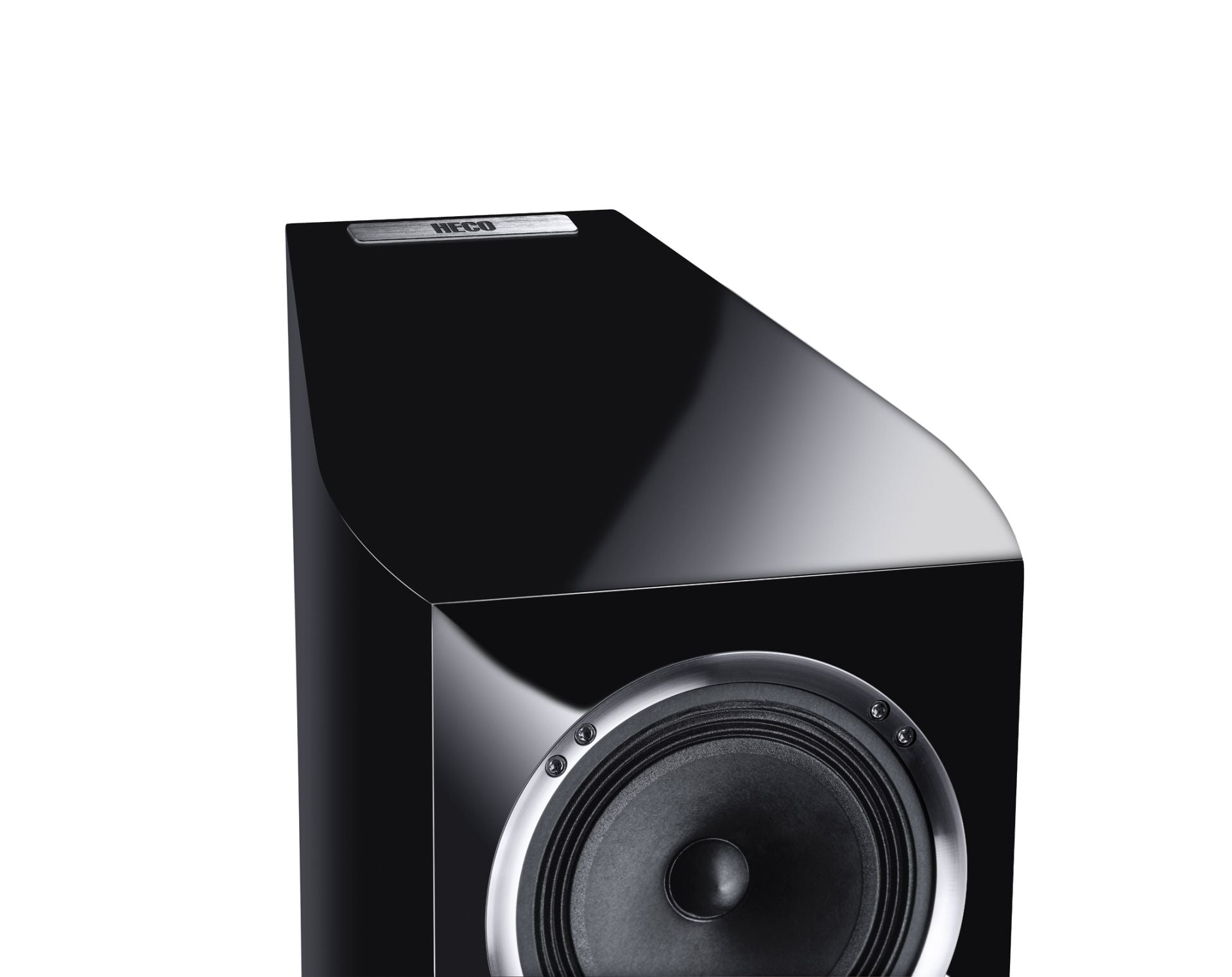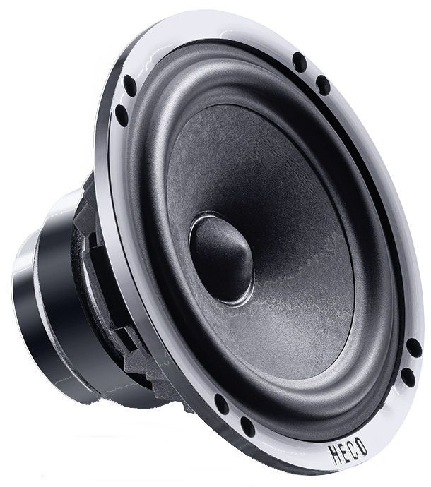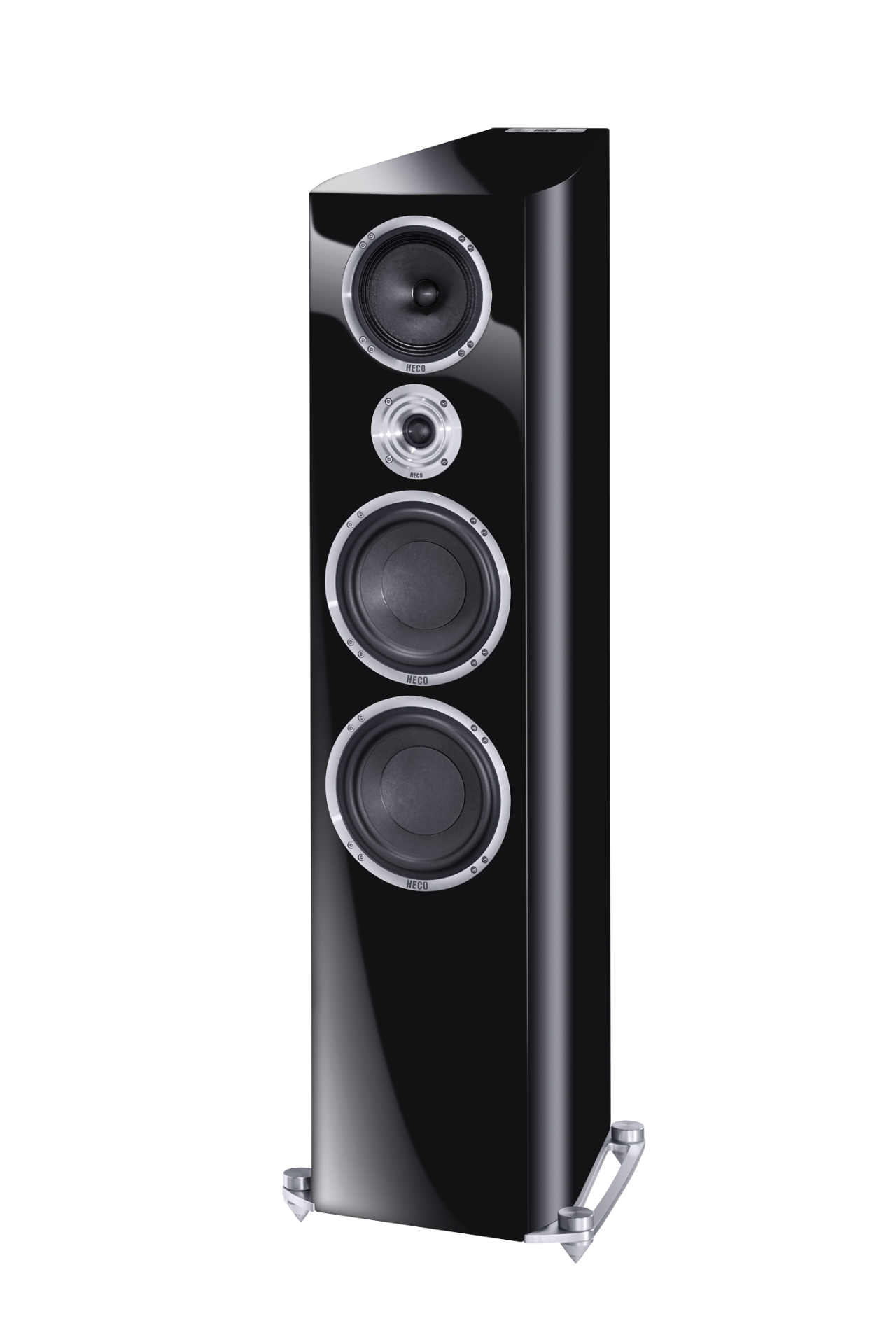 Large state-of-the-art floorstanding speaker with outstanding acoustic properties. Eye-catching features of the largest floorstanding speaker in the series include its angled top and solid aluminum struts, which provide a broad base for a secure footing. Height-adjustable metal spikes ensure the speaker is positioned at a perfect distance from the ground, thereby paving the way for an unadulterated high-end listening experience. The bass and mid-range frequencies are catered for by two 200 mm woofers and a 170 mm midrange driver with tried and tested HECO kraft paper cones, which are renowned for their audiophile sound characteristics and high level stability. The newly developed Fluktus tweeter, which features a computer-optimized multi-wave front panel and 30 mm PFC dome, reproduces its entire frequency spectrum with very natural tones and without any form of exaggeration.