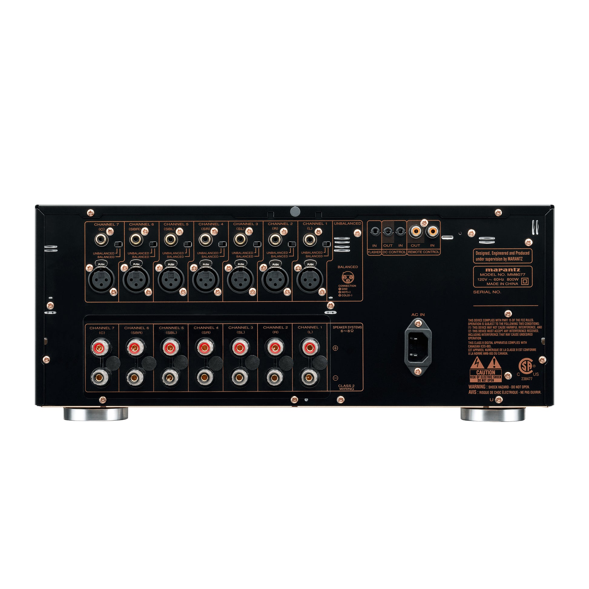 Featuring our unique current feedback discrete power amp output stages that are identical for all channels, the MM8077 is equipped with multiple high current discrete power transistors that feature high slew rate and wide operating bandwidth to extract the most detail from today’s high resolution audio formats.