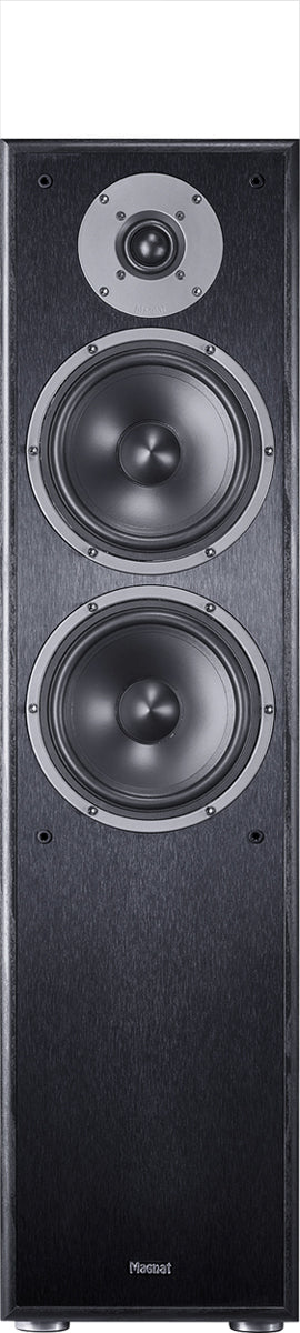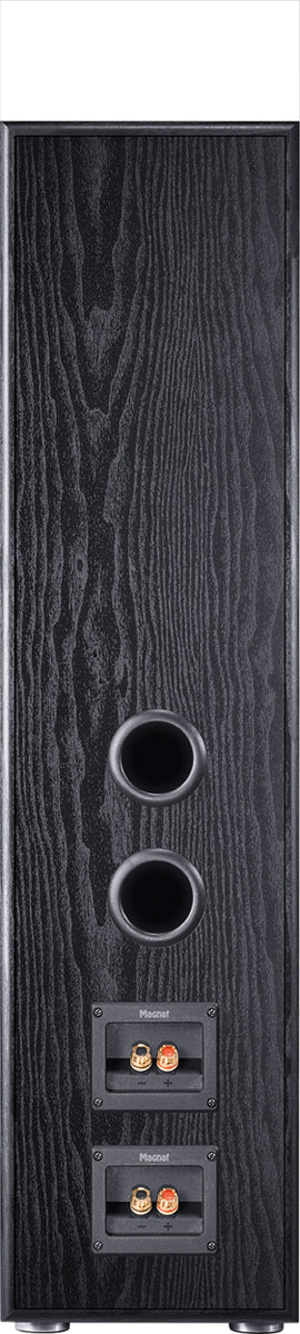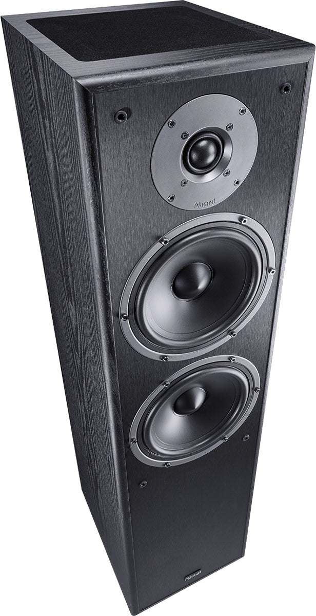At 86 cm high, the S 80 has perfect dimensions, both acoustically and visually. With its cabinet in black or walnut, there is a suitable version for every living environment. The baffle has a black finish and the removable front cover made of acoustic fabric rounds off the appearance.