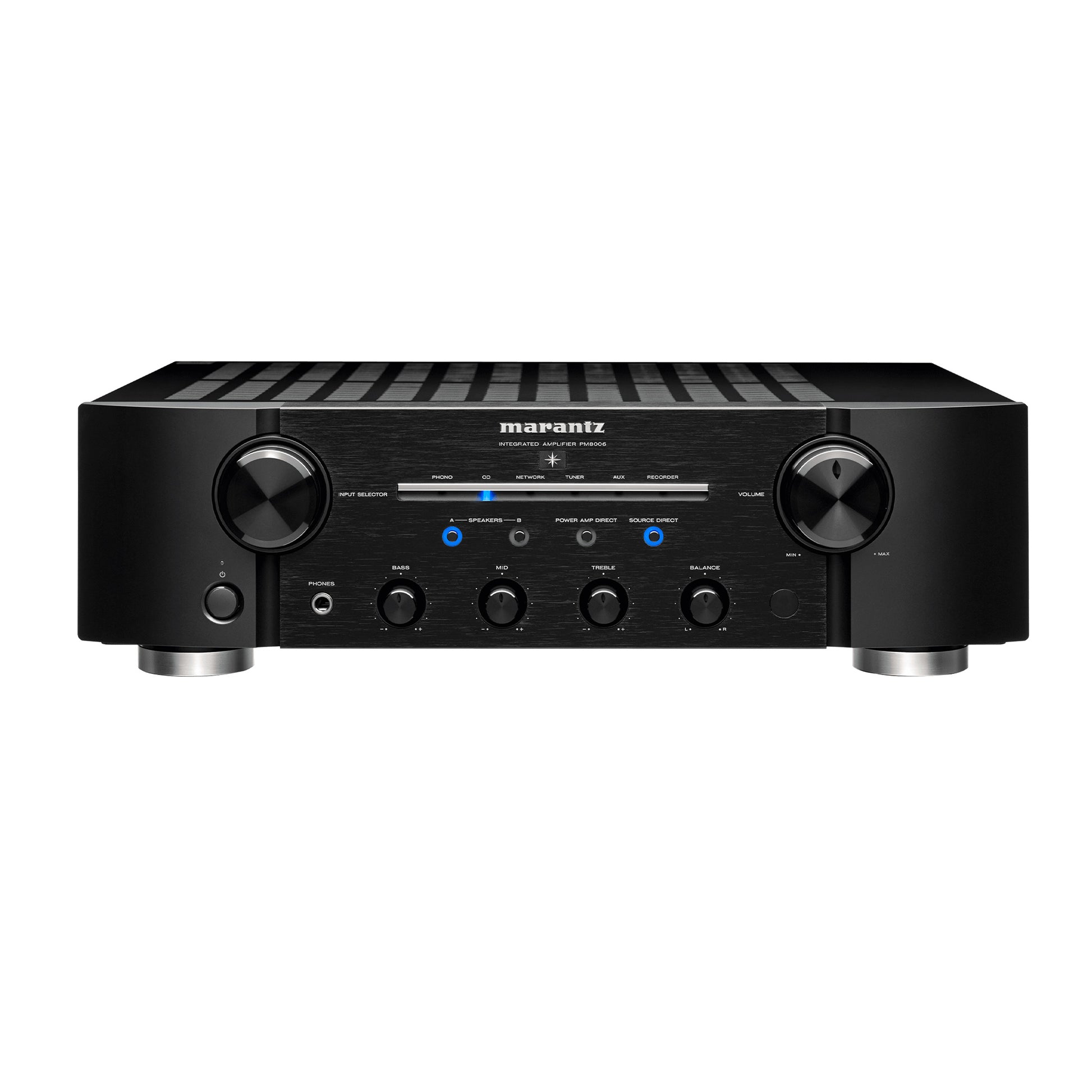 For a long time, Marantz integrated amplifiers have featured high-quality phono stages. We’ve elevated our commitment to vinyl with the Marantz Musical Phono EQ stage, as seen in the PM8006 amplifier. Enjoy the very best playback of all music sources, be they digital or analog. Marantz Musical Phono EQ uses two-stage amplification, allowing less gain per stage for lower distortion. The PM8006 combines Marantz HDAM technology with JFETs (junction gate field-effect transistors) in the input stage, providing high input impedance that eliminates the need for AC coupling capacitors and simplifies the signal path, vastly improving the signal purity overall.
