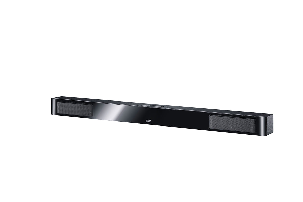 The subwoofer, which is also fully active and wirelessly connected, is equipped with a 250 mm long-throw chassis at the side. This is driven by an amplifier that delivers 120 watts of continuous power and 240 watts of maximum power. Thanks to a power consumption of less than half a watt in standby mode, both the soundbar and the subwoofer can be left on without hesitation. As a result, you can enjoy a high-quality sound as soon as a connected source is switched on.