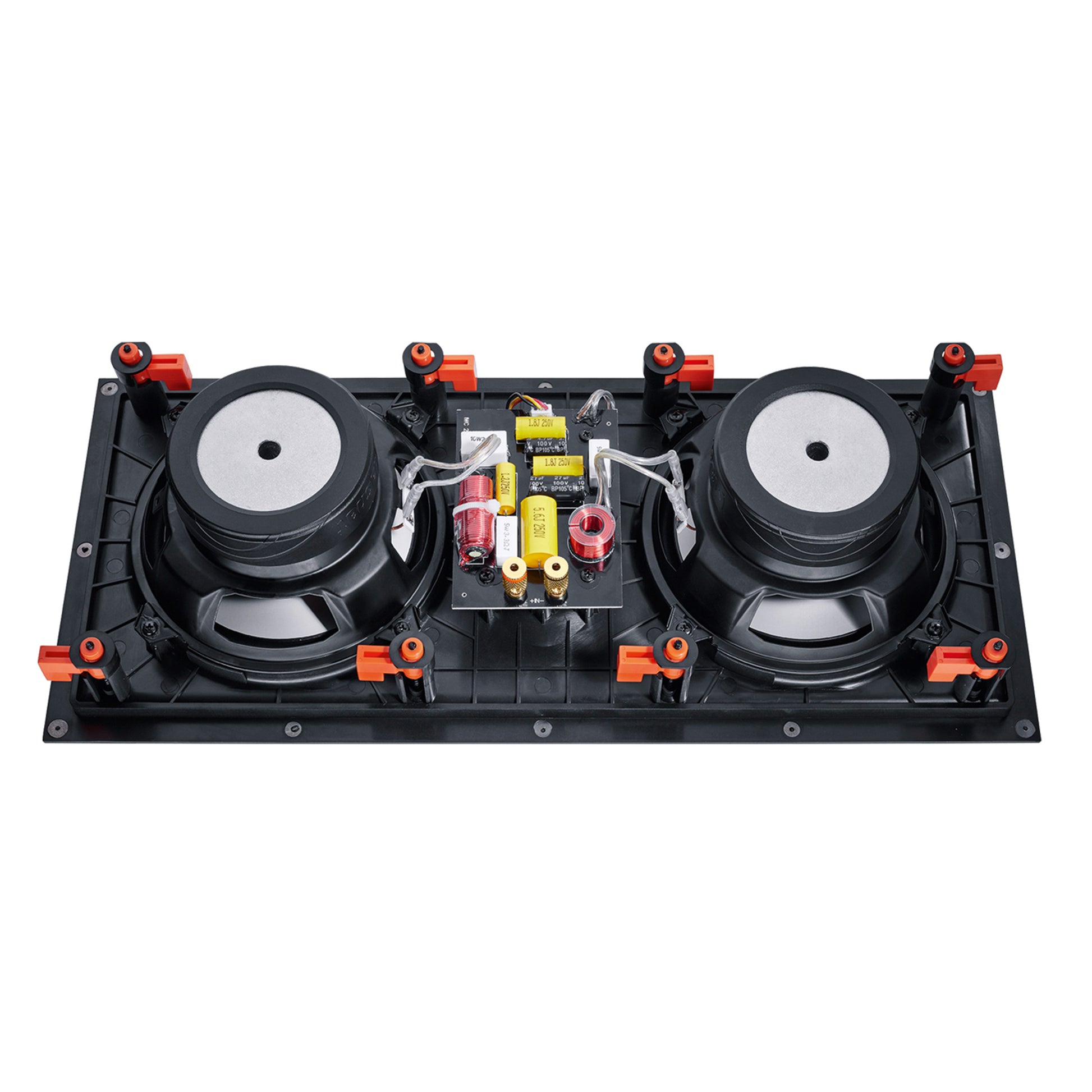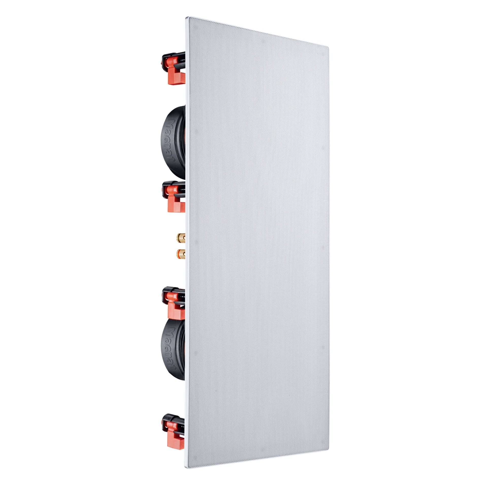 The largest model for wall installation is the Signature IWT 262, which features two 16 cm woofers and a tweeter. The heavy-duty built-in speaker is ideal for use in a demanding stereo environment or as a front speaker (L/C/R) in a home cinema setup. Thanks to its balanced dispersion properties, it can be used in both a vertical and horizontal configuration. The latter version makes it perfect for installation underneath projector screens and flat screen TVs. A rather low installation depth of just 100 mm ensures an uncomplicated installation process, even in rooms where space is at a premium. The treble level can be adjusted in three stages, which allows the sound to be adapted to different room acoustics.
